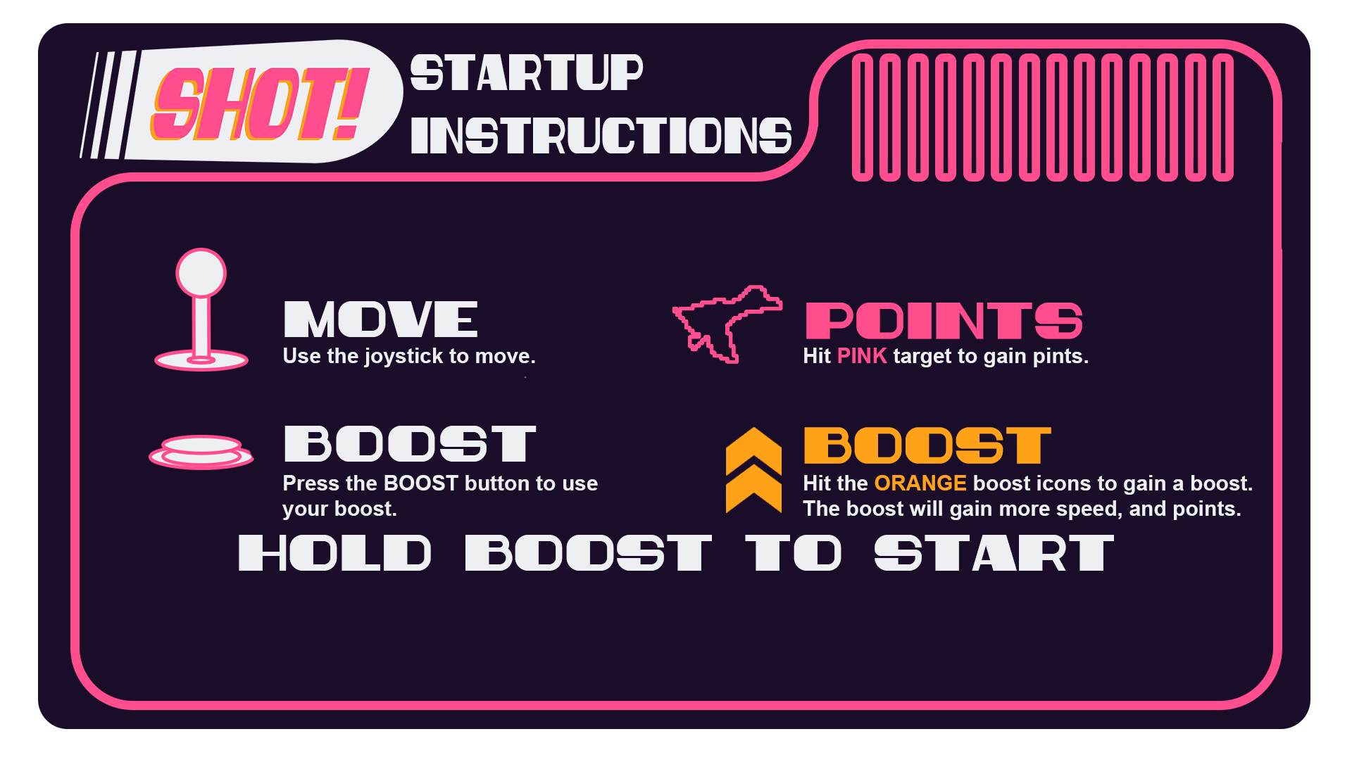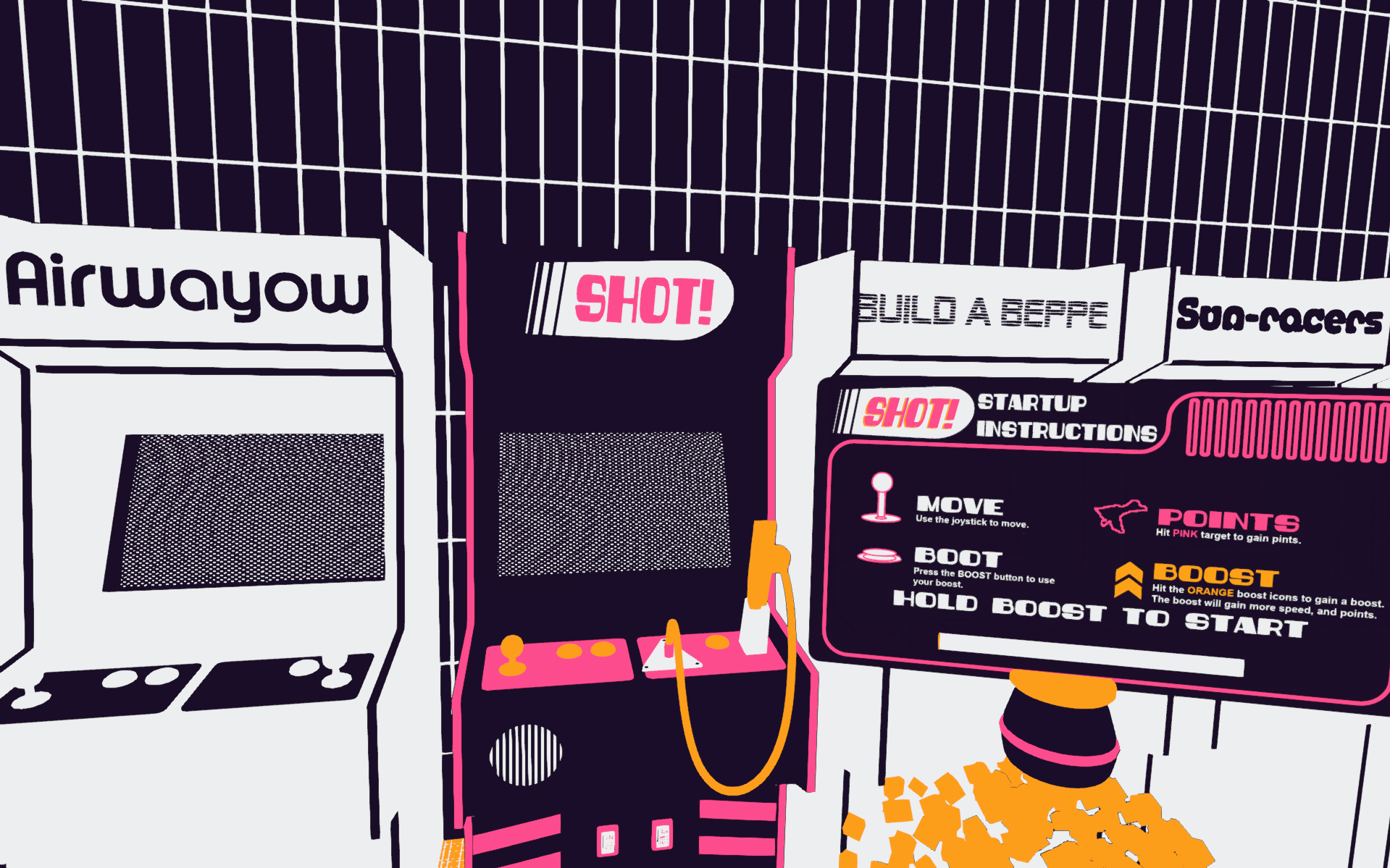 In SHOT!, you are the projectile. Race through a blistering tunnel that warps through the digital worlds of iconic arcade classics. Your goal isn't just to survive; it's to accelerate. Chase breakneck speeds, chain together boosts, and weave through brutal obstacles to rack up a massive high score.